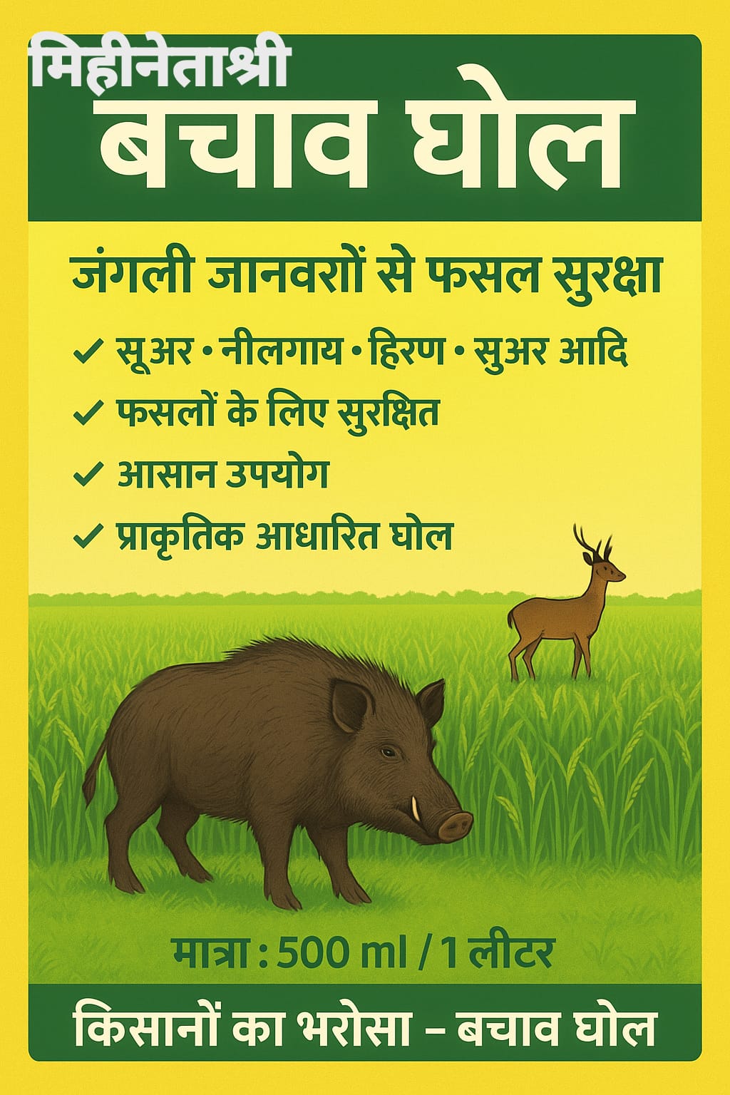 MahinetaShri Bachav Ghol is an effective, natural, and farmer-friendly protective solution that helps safeguard fields from damage caused by wild boars, blue bulls (nilgai), deer, and other wild animals.