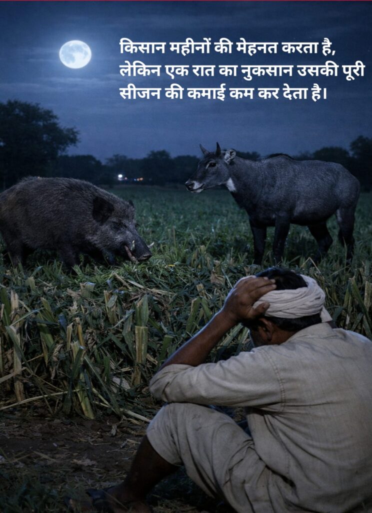 किसान भाई की समस्या वास्तव में बहुत बड़ी है, और यह बात साफ दिखती है कि जंगली जानवरों से फसल का नुकसान सिर्फ पैसों का नहीं, बल्कि मेहनत, समय और उम्मीदों का भी नुकसान है।