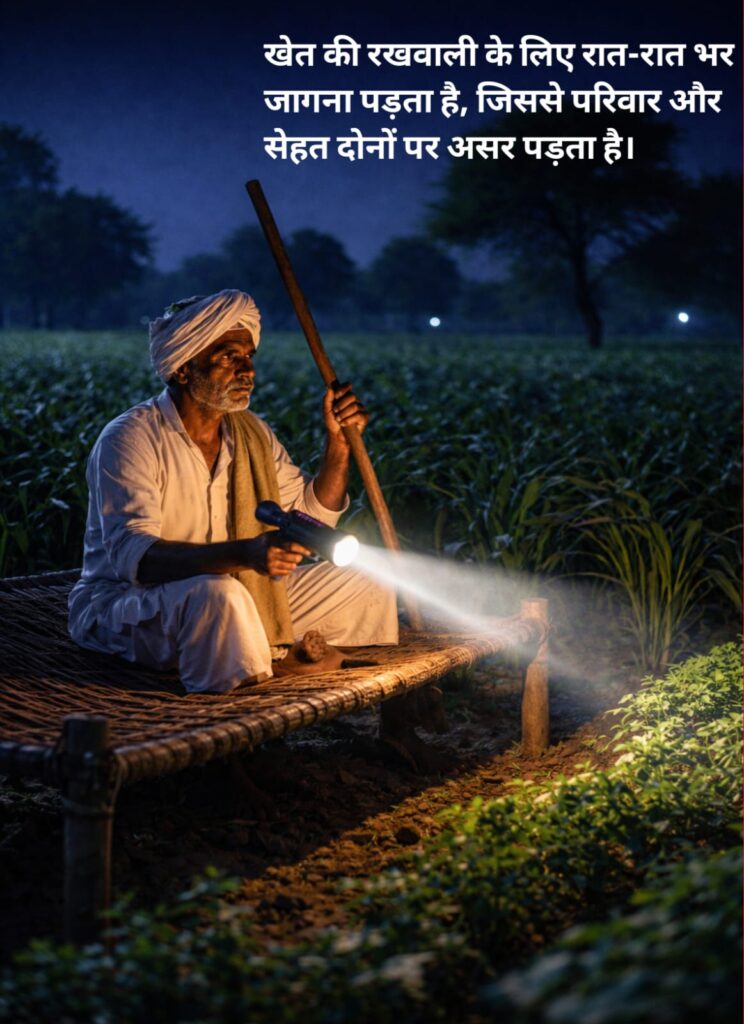 खेत की रखवाली के लिए रात-रात भर जागना पड़ता है, जिससे परिवार और सेहत दोनों पर असर पड़ता है।